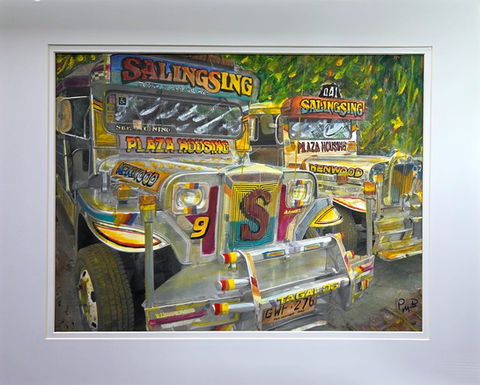 Peter is inspired by the Filipino light and the abundance of ambient colors in which he recreates the local scenes, Jeepneys and Festivals.