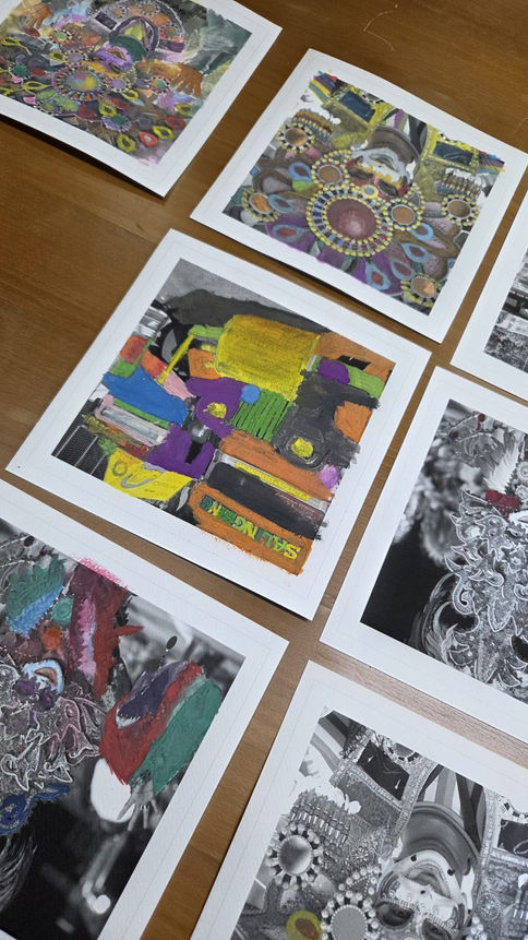 The collection includes floral, abstract, and surreal artwork, creating a vibrant and diverse display.